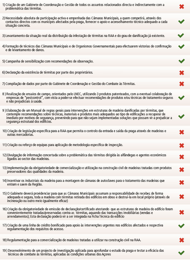 Neste sentido, a 16 de Setembro de 2004, o Governo Regional nomeou um Grupo de Missão para definir um plano de acção relativamente às térmitas. Das 19 recomendações efectuadas por esse Grupo, foram implementadas até ao momento 6 e, destas, 3 respeitam à realização de estudos e divulgação dos seus resultados.